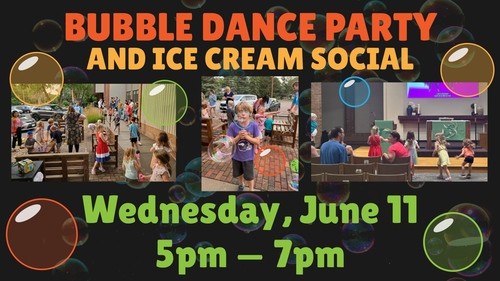Do you have kids that love to dance and move or love playing with bubbles? If so, join us on June 11 from 5-7pm for a fun night filled with bubble activities, family friendly music, and ice cream. The bubble dance party and ice cream social is a great opportunity to meet friends new and old and have a little fun with the whole family.