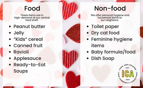 ICA is seeing record numbers of families visiting the food shelf. With over 1000 families visiting each month, their food stock is in constant need of being replenished. Traditionally the spring is a time when contributions of food and financial support begin to decline. In response ICA joins the hundreds of other food shelves in Minnesota to encourage contributions during March Food Share month. It’s the second most important time of the year for food and financial contributions.