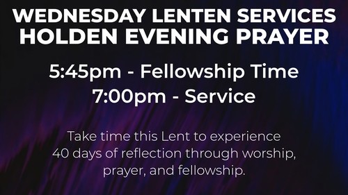 Join us the next five Wednesdays at 7pm for our Holden Evening Prayer services and to hear others' faith stories. Come before the service from 5:45pm-6:45pm for fellowship and light refreshments. Take time this Lent to experience 40 days of reflection through worship, prayer, and fellowship.