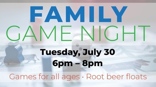 Bring your family to All Saints on July 30 from 6-8pm for a Family Game Night. Challenge another family to a board or card game, or just come for some family fun. We will have games for all ages and root beer floats!