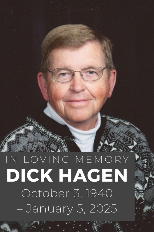Dick was born in McIntosh, MN, to parents Joseph and Harriette (Jorgenson) Hagen. He was baptized and confirmed at Our Savior’s Lutheran Church in McIntosh and graduated from McIntosh High School. He earned a bachelor’s degree in Business Administration from Moorhead State University in Moorhead, MN, in 1963. Dick proudly served in the Air National Guard. Dick was united in marriage to Karen June Hegland on August 22, 1964, in Our Savior’s Lutheran Church in McIntosh, MN. Dick worked for General Mills for 35 years.