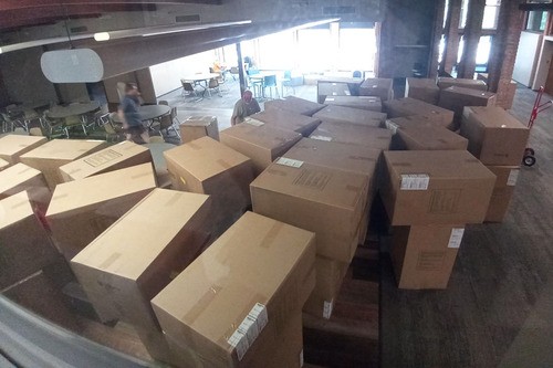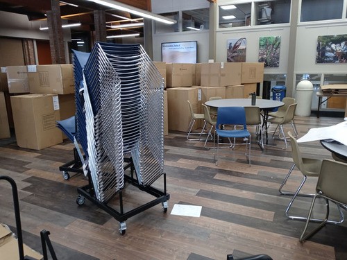 Two weeks ago we received our new tables, and yesterday we received our new chairs and storage carts. Thanks to Greg Jackson, Aaron Achartz, Gayle Baldner, Louise Hokenson, Nancy Mykleby, Amy Stratton, and Nico for their help in unboxing and assembly. Thanks to all who have contributed to this project!